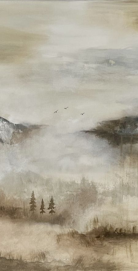 Farverne bevæger sig i dæmpede nuancer af jord, tåge og vinterlys -et nordisk udtryk, hvor det rå og det spirituelle mødes.