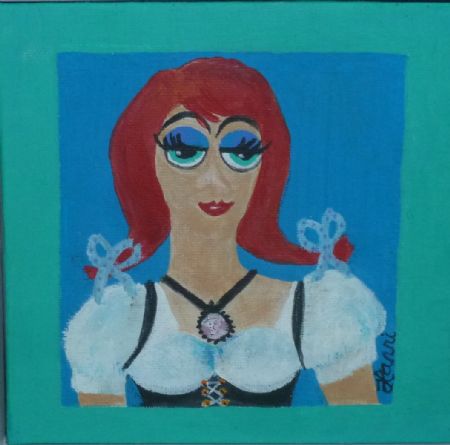 Akryl maleri Oktoberfest kvinde af Hanni Rossenell malet i 2020
