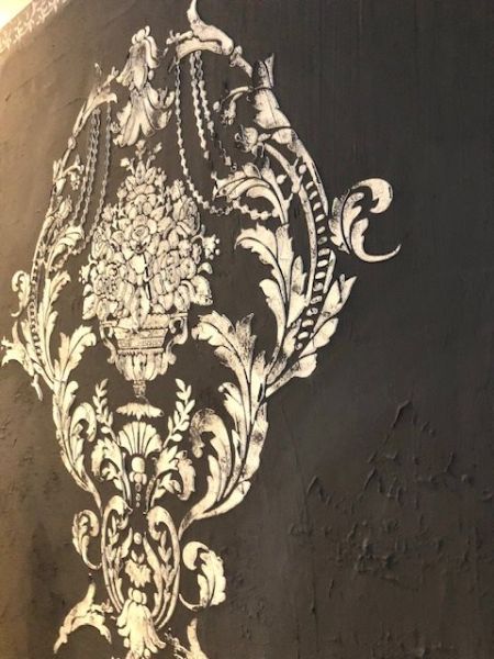 Dette dekorative og rå elegante maleri er skabt i en dyb antracitgrå farve med et fantastisk forstenet teksturprint, der skaber en følelse af antik storhed og moderne kant.