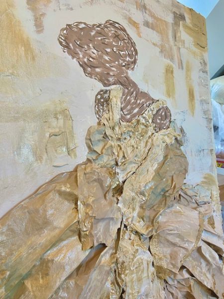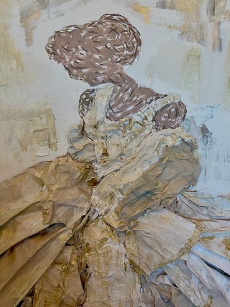 Kjolen, skabt i rispapir, folder sig ud i lag på lag .